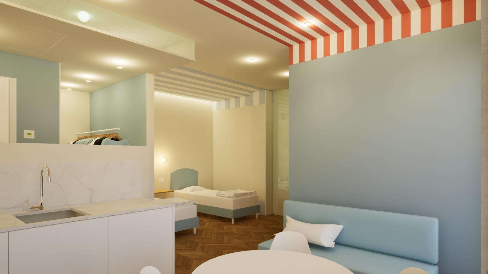 Within our Dependance, these residential units are furnished in a modern style and feature a spacious living room with kitchenette, equipped with coffee machine, refrigerator, microwave, and dishwasher.