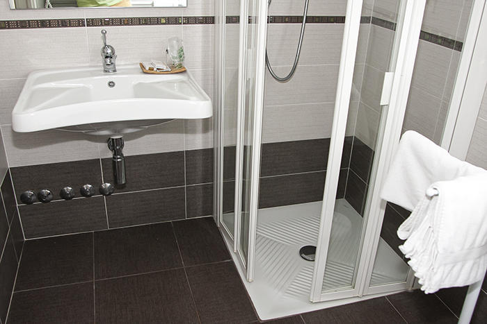 • private bathroom sink, toilet, bidet, shower