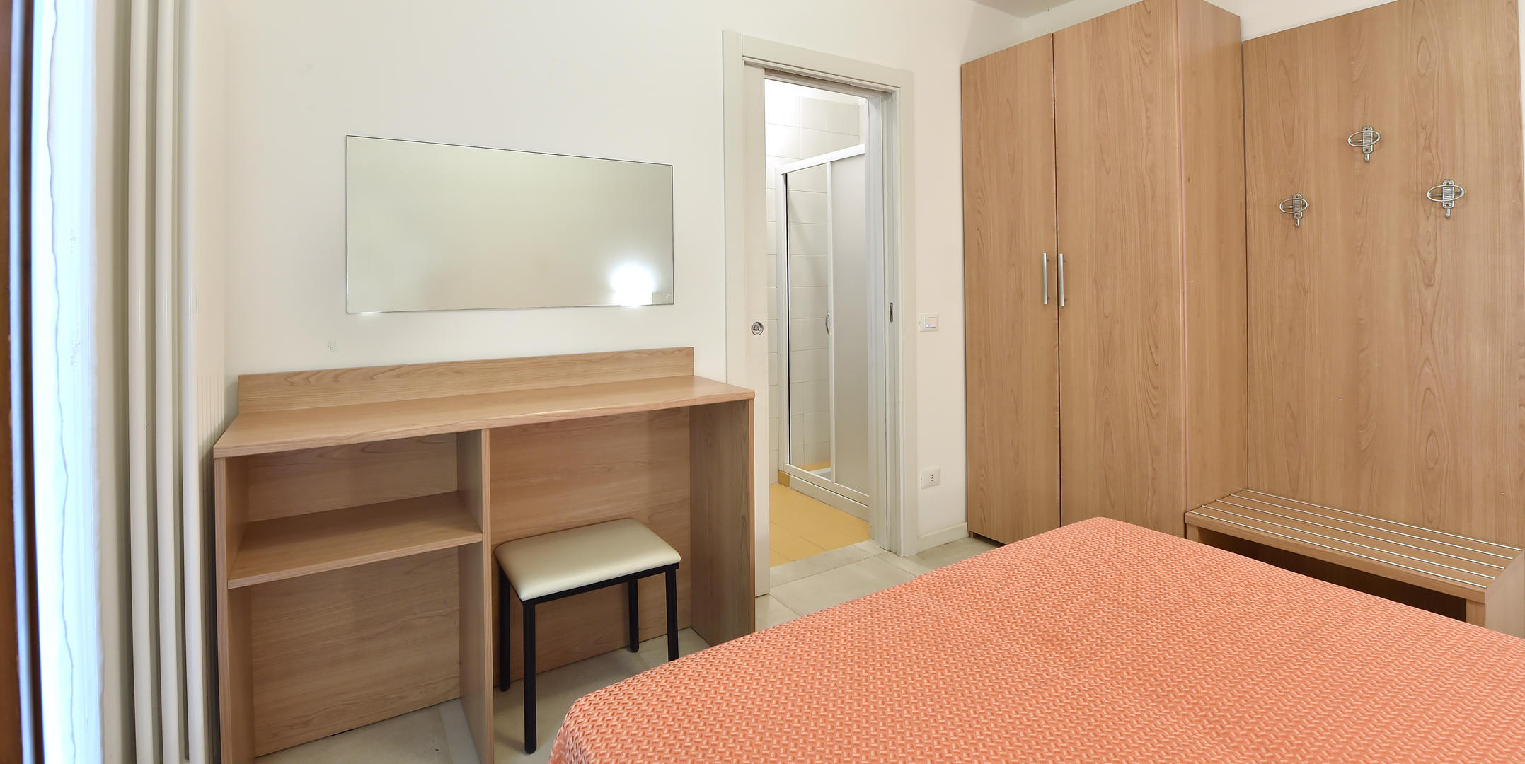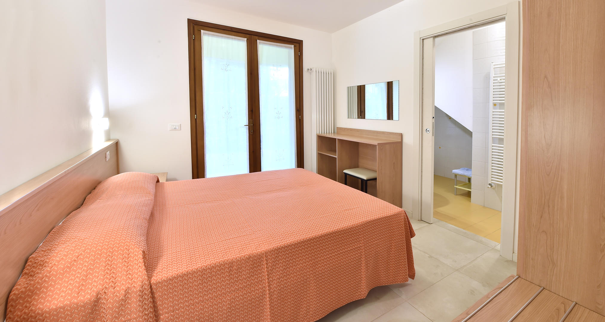 Si trova al piano terra di una villa con giardino. Può ospitare fino a cinque persone ed è dotato di due camere con letto matrimoniale, due bagni con doccia, soggiorno con divano letto e zona cottura, parcheggio, giardino chiuso e terrazzato.